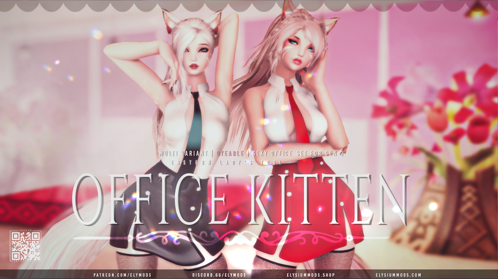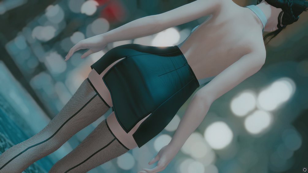 A two-variant "sexy secretary" type outfit comprised of a one piece top & skirt set with a tie, fishnet thigh-highs with squish, and (optional) lace panties. Entirely custom-made mesh & textures. See a full preview album at this link.
